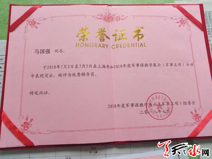 2018年7月1日至5日由教育部主办,上海市委承办,上海市青少年校外活动营地——东方绿洲组织实施的“2018年度军事课教学展示(军事五项)”在绿洲酒店阳光会堂开营,来自全国的43个代表队参赛。天水市启升中学代表甘肃省参赛,分别进行教练组和学生组比赛。