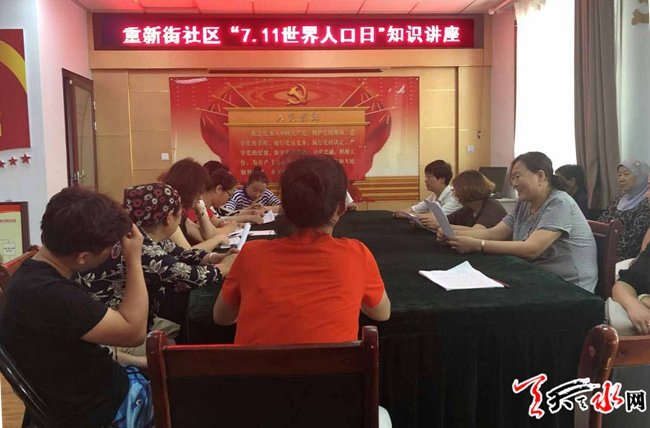 天天天水网讯(通讯员 刘芸芳)7月11日是世界人口日,为进一步普及健康生活意识,营造全民参与健康行动的良好氛围,打造健康社区。近日,重新街社区计生协联合社区卫生服务中心开展了“三减三健”健康知识讲座。
