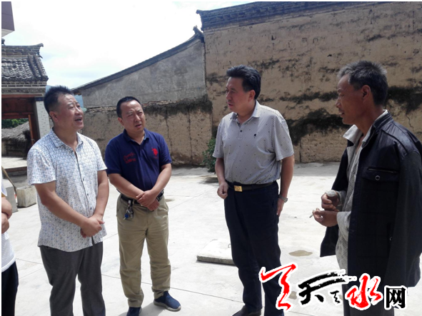天天天水网讯 近期,连续的强降雨给武山县人民群众的生产生活造成了严重影响,个别地方山体滑坡、少数路段道路堵塞、部分群众房屋倒塌。天水市食药监局领导高度重视,时刻关心关注着扶贫联系村群众的安危和生命财产安全。为了解扶贫村受灾情况,帮助扶贫村做好防汛防灾减灾工作,7月9日,天水市食药监局局长陈克孝带队,副局长甘志国、吴晓堂和局机关帮扶责任人等一行深入武山县桦林镇柒坪村和郝山村,开展了防汛防灾减灾慰问工作。