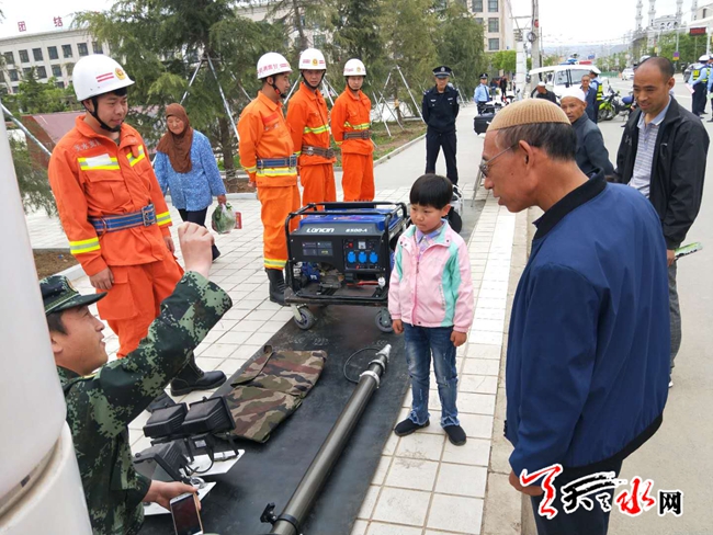 天天天水网讯 7月10日,张家川县公安消防大队在县行政中心广场组织开展了以“科技强警、创新圆梦”为主题的消防科技宣传普及活动,进一步提高辖区人民的防灾减灾能力。