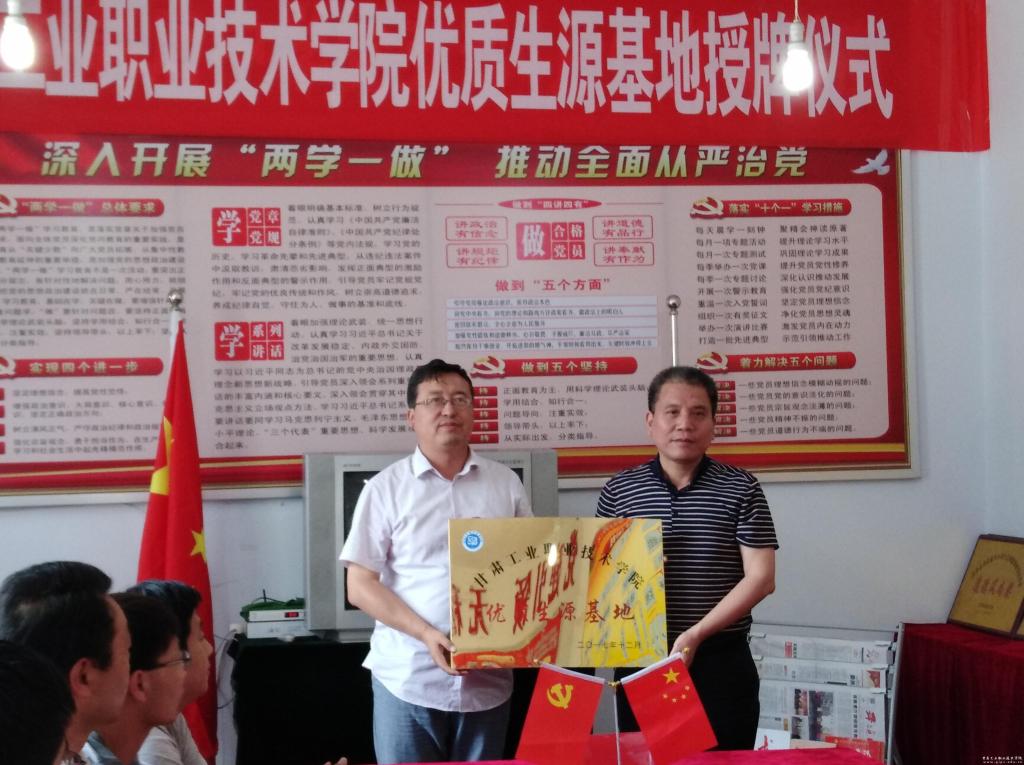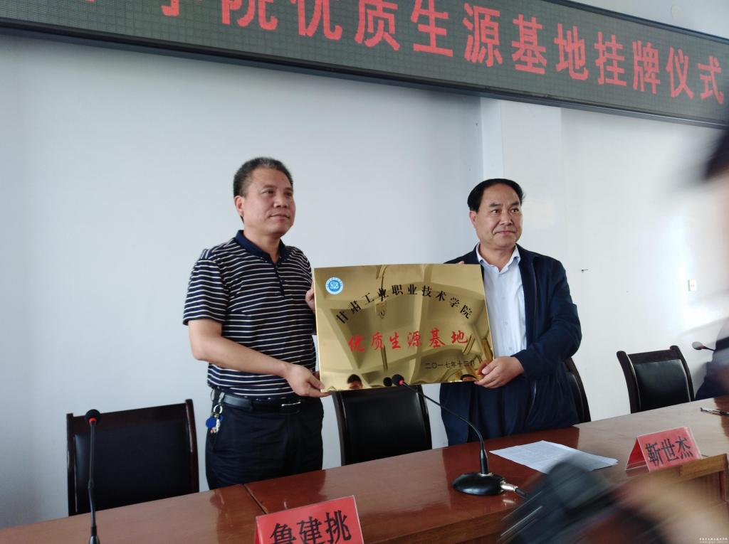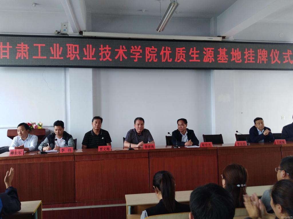鲁挑建讲话,介绍了我校的发展历程,对我校特色优势专业及其就业方向作了重点介绍,并对平凉工程技术学校多年来对我校单独招生工作的支持表示感谢。鲁挑建表示,两校专业相近,有较大合作优势,希望双方以本次挂牌仪式为契机,在招生、专业建设、师资培训等方面继续加强合作,促进中高人才培养的进一步契合,为社会培养更多地技术技能人才。靳世杰希望,以本次优质生源基地挂牌活动为契机,继续深化两校在师资培训、资源共享、学生培养等方面的深层次合作。
