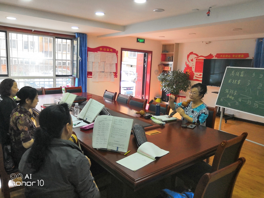 “刘老师人好的很,像我们这些年纪大的人既不识谱,又不会打拍节,而且音准也不行,教我们真是不容易。可刘老师却很有耐心,她态度好,总是不厌其烦的一遍一遍教。有时课后遇到新学的曲子忘了,随时通过微信视频跟刘老师请教,她都会热心的指导,我打心里感谢她。”67岁的刘明珠认识刘丽华之前一直在老年大学学吹葫芦丝,一次偶然在藉河风情线河堤边,她被刘丽华美妙的葫芦丝声音所吸引,两人由相识到相熟,也是从那时起刘明珠开始跟着刘丽华学吹葫芦丝。