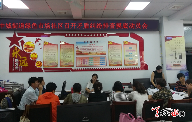 天天天水网讯【通讯员张彬】7月26日,秦州区中城街道绿色市场社区召开了矛盾纠纷排查摸底动员会,社区党委书记、主任、居民小组长约20人参加了本次会议。