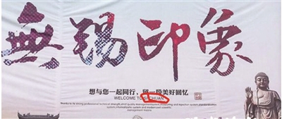 新闻:明明是宣传无锡的城市“形象广告”,但英文标注却是“欢迎来四川”,这一“乌龙”被微博网友批评是“太不走心”。7月27日,一起无锡城市形象宣传广告牌“差错”,引发网友关注。记者7月28日从相关方面获悉,当地城管部门回应称,该广告牌已经被拆除,其所处位置为非广告位,属于擅自发布,下一步还将加强巡查整治力度,确保市容整洁有序。(新闻来源:扬子晚报)