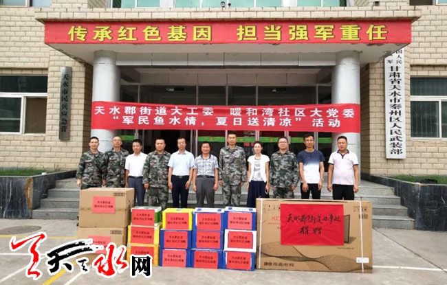 天天天水网讯 在“八一”建军节来临之际, 进一步深入开展双拥工作,落实各项优抚政策,巩固新时代的军民关系。7月31日上午,天水郡街道大工委、暖和湾社区大党委在秦州区人物武装部开展“军民鱼水情,夏日送清凉”为主题的慰问活动。
