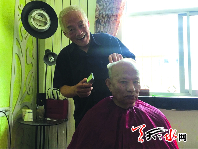 8月5日正是伏里天气,热浪滚滚,家住天水公路管理局70岁的老党员蒋耀强将前一天刚刚保养过的剪子、推子、梳子等工具,一一收入小皮包便出发了。蒋耀强每个月要为40多位老人提供免费理发服务,17年累计义务理发达上万次,七旬老人用他的爱心,温暖了整个天水公路局北家属楼。