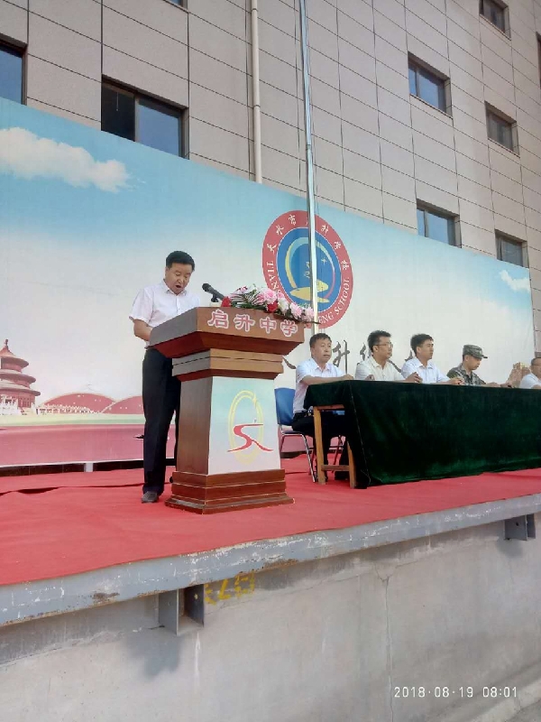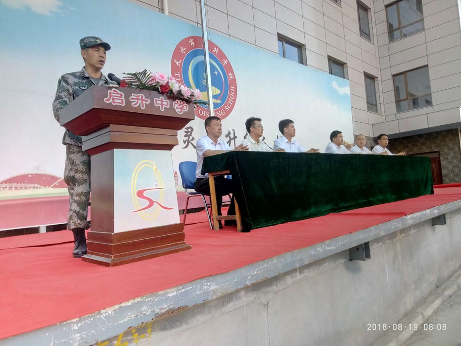 2018年8月19日,天水启升中学举行高一新生军训动员大会。莅临大会的领导有天水陆军预备役步兵旅炮兵团营长丁华兵,启升中学校长赵五成、副校长池浩、马世清、连锋,教导大队教导员政教处副主任羊正军及高一年级级组长汪旭龙。800余名新生以及十余名教官和高一级十三个班的班主任参会。