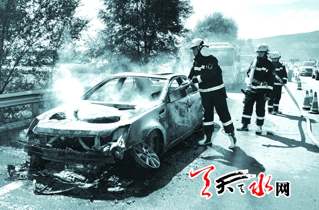 8月18日14时28分,武山消防中队接到报警,称在天定高速公路洛门路段有一辆轿车突然起火燃烧。接警后,消防官兵立即赶赴现场扑救。在消防官兵到达距事发地点约2公里处时,由于道路拥堵,车辆无法通行,消防官兵不得不协助交警对车辆进行疏导,确保消防车辆到达现场。消防官兵到达事发现场时,只见一辆停在应急车道的小轿车正在猛烈燃烧,消防官兵设置警戒标志对现场进行警戒,迅速铺设水带展开扑救,明火很快被扑灭,轿车已烧得面目全非。随后,消防官兵对事故车辆进行了冷却,确认无复燃可能后撤离了现场。