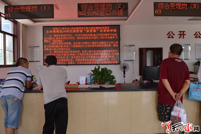 为深化“放管服”改革,加快推行“一窗办、一网办、马上办、简化办、就近办”,近期,甘谷县公安局交警大队坚持民意引领,问题导向,在积极落实“放管服”相关政策的基础上,站在老百姓的角度出实招,推出多项便民、利民、惠民新举措,以车管办事大厅为主阵地,为前来办事的群众提供更加有效、便捷、优质的服务,不断提升广大群众的获得感、幸福感,受到办事群众一致好评。