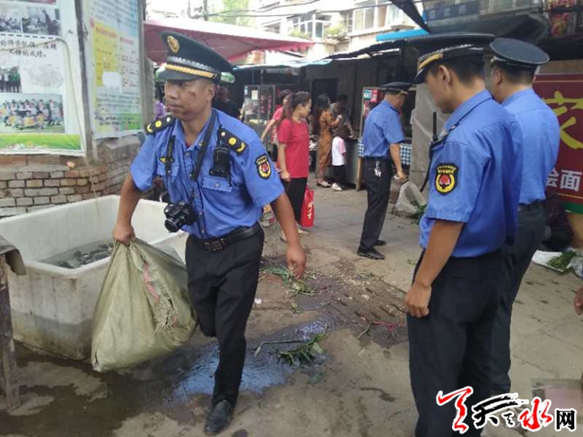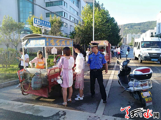 天天天水网(通讯员 靳雪萍)近日,秦州区执法局执法局玉泉中队针对辖区内随处摆摊设点、脏乱不堪的早点市场经营秩序“乱”的现象,开展了早市摊点专项整治行动。