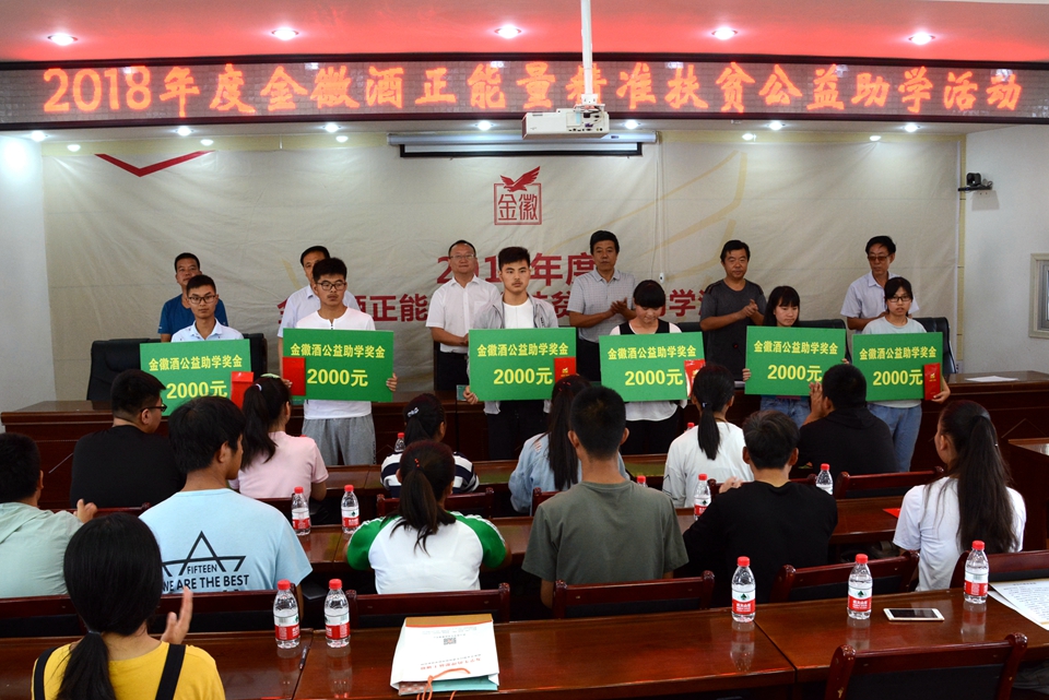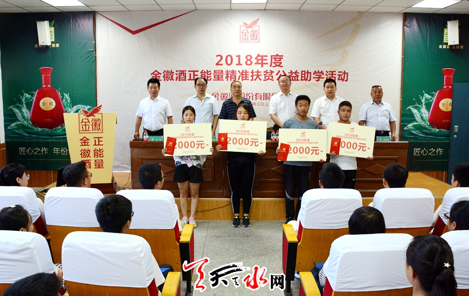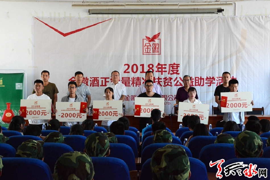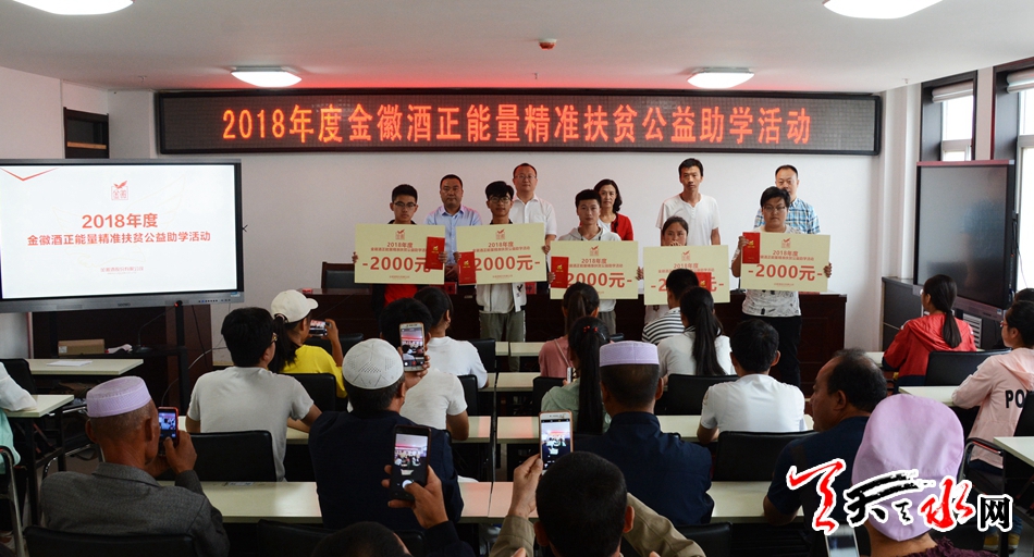天天天水网讯(见习记者罗馨)金秋八月,丹桂飘香。 秋高气爽的天气昭告着暑期生活的结束,等待着学子们的是既紧张又向往的校园生活。今年刚考入大学的大一新生也将开始大学校园新生活。在开学季来临之前,为帮助我市贫困家庭学子不因家庭困难而失学,金徽酒股份有限公司在我市两区五县举办了共七场"金徽酒正能量精准扶贫公益助学活动"一共资助188名贫困学生,每人资助2000元,资助金额共376000元。