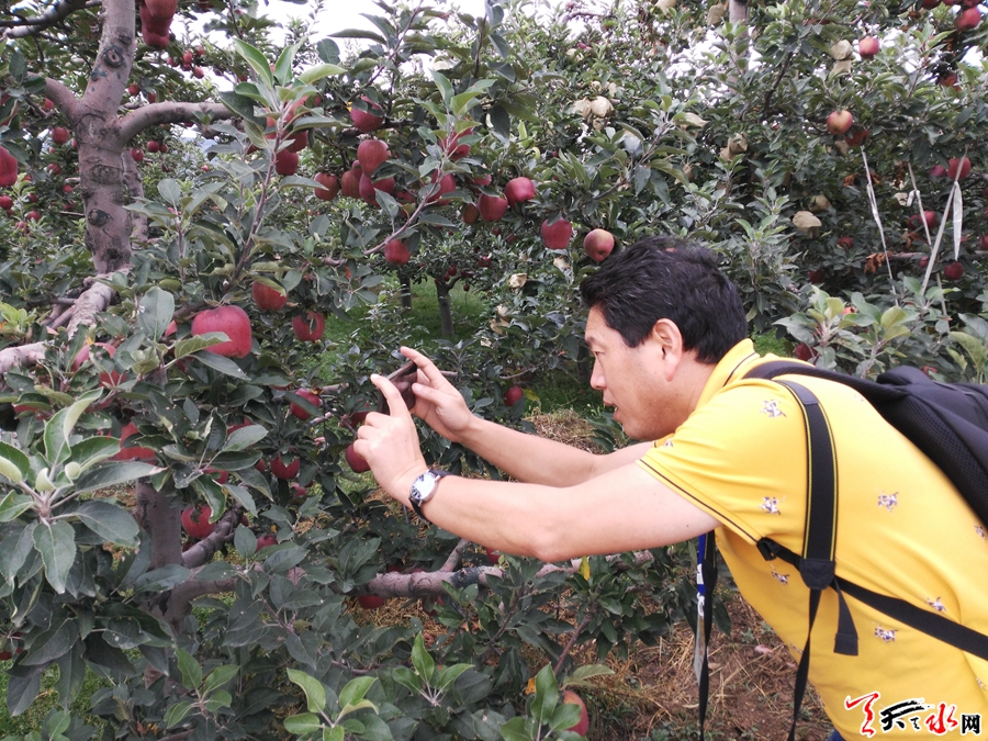 “哇,太诱人了!”当采风团来到果香四溢的南山万亩优质花牛苹果基地时,看着漫山遍野的苹果树和树梢上红彤彤的苹果,纷纷拿出手机、相机狂拍不已,并第一时间用微信、微博等平台将照片传送出去,与天南海北的亲朋好友分享着此刻激动的心情。