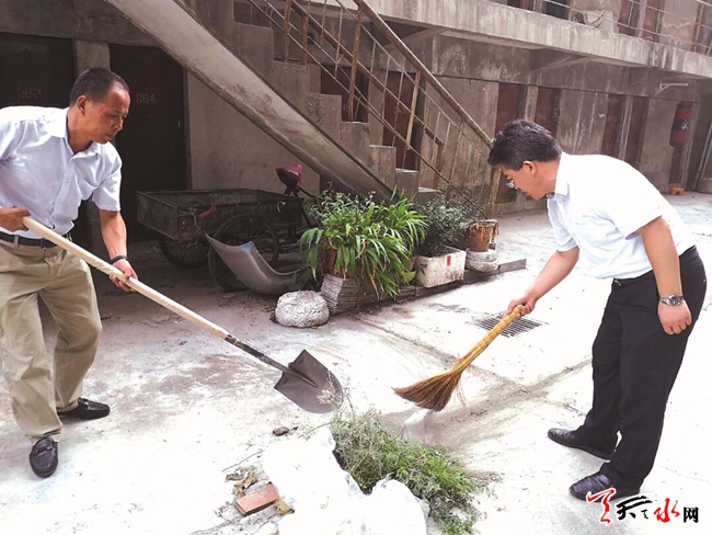 天天天水网讯(记者 余碧波)8月31日,秦州区大城街道奋斗巷社区组织辖区单位在职党员开展“创建全国文明城,在职党员先锋行”志愿服务活动。活动中,辖区24家单位对所包小区内的生活垃圾、院内堆放的杂物、楼道内的城市小广告、“牛皮癣”进行集中彻底的清理。发挥党员干部模范带头作用,为创城贡献一份力量。