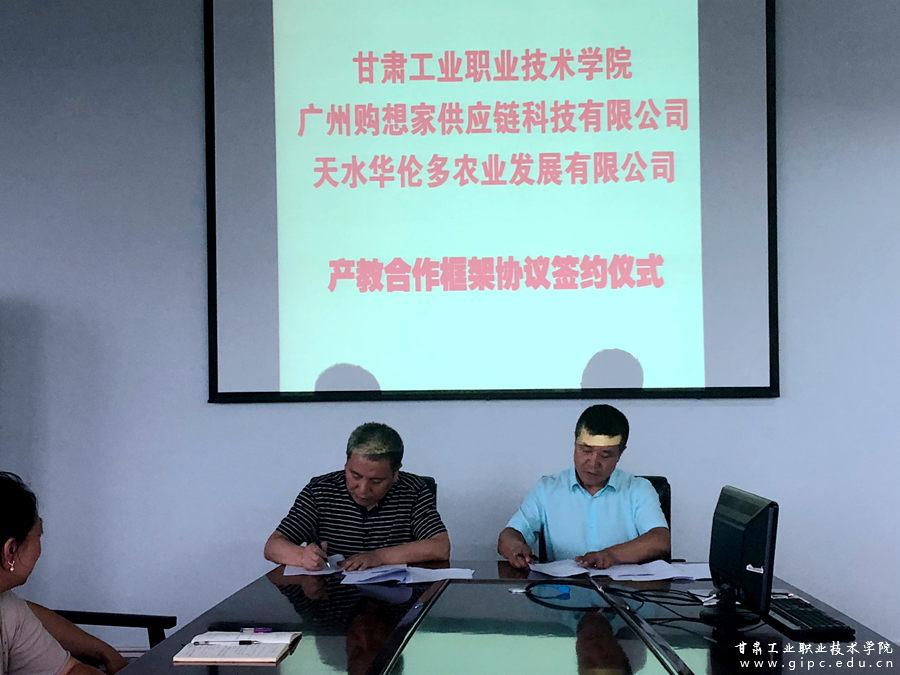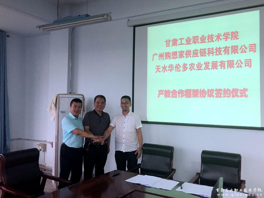 8月31日,学校与广州南航购想家供应链有限公司、天水华伦多农业发展公司三方共同签订产教合作框架协议。学校副校长鲁挑建、南航购想家副总经理王斌、华伦多总经理张天刚出席了签字仪式。