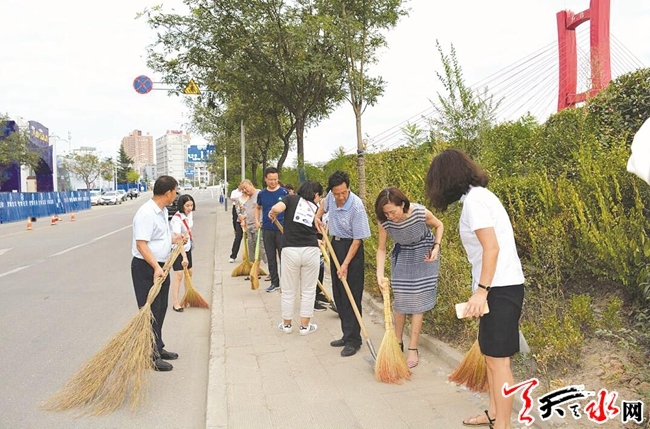 天天天水网讯(记者 洪波)8月31日下午,秦州区东关街道十方堂社区组织辖区单位党员干部和居民共计100余人开展了“创建全国文明城 在职党员先锋行”志愿服务及环境卫生整治活动。活动中,志愿者们来到各自的责任区域,清理小广告,并对绿化带内的垃圾,以及居民小区的卫生死角进行彻底清理,全面提升了辖区环境的洁净水平,以实际行动为创建全国文明城市增光添彩。