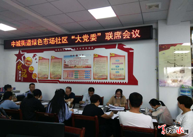 天天天水网讯【通讯员 张彬】9月6日,秦州区中城街道绿色市场社区召开了“大党委”党建联席会议,参加人员有大党委委员、辖区单位、居民代表,并邀请中城街道党工委副书记、纪工委书记冯平林参加。