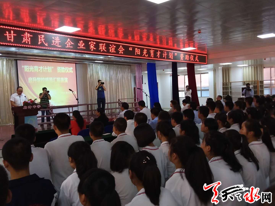 2018年9月6日,甘肃省民进企业家联谊会“阳光育才计划”资助仪式在天水市启升中学举行。《天水日报》《天水在线》《麦积新闻》特派记者采访报道。