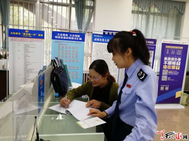五是把推广“最多跑一次”和“税务专邮”相同步。通过税收宣传栏、办税服务厅LED显示屏、税务系统网站、办税服务微信群、《天水日报》等各类新闻媒体,大力宣传“最多跑一次”纳税服务业务和最新税收政策,对外公布“最多跑一次”涉税事项办理清单,向社会承诺6大类119项涉税事项一次性办理。对“窗口受理,内部流转,限时办结,窗口出件”的涉税事项,推行“邮寄出件”服务,免费为纳税人邮寄办税资料,无需纳税人上门取件,同城纳税人仅1天就可收到所需的全部资料。全市累计提供 “税务专邮”服务28件,为纳税人节约了时间,节省了成本,让纳税人畅享机构改革带来的便利服务。