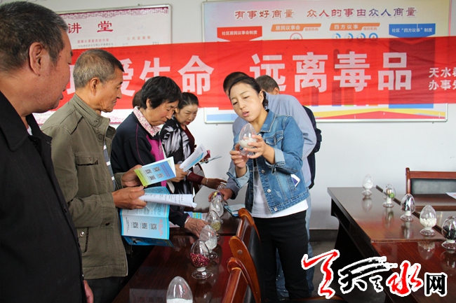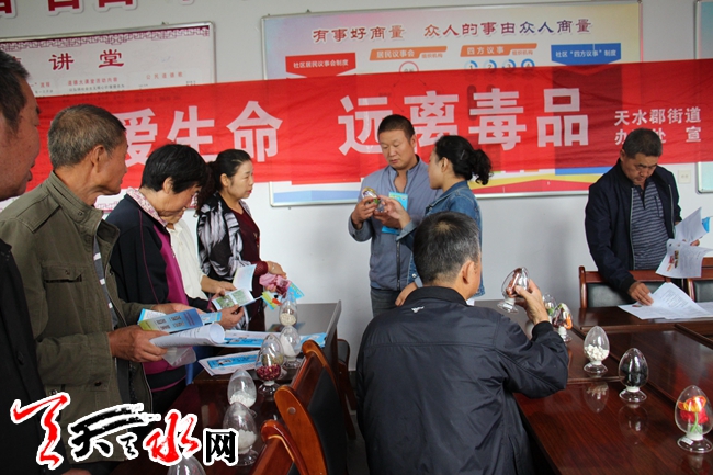 天天天水网讯(通讯员宋翠霞)为进一步加大禁毒宣传力度,增加辖区群众对毒品的认知度,9月12日上午,天水郡街道王家磨社区开展了禁毒宣传教育活动。