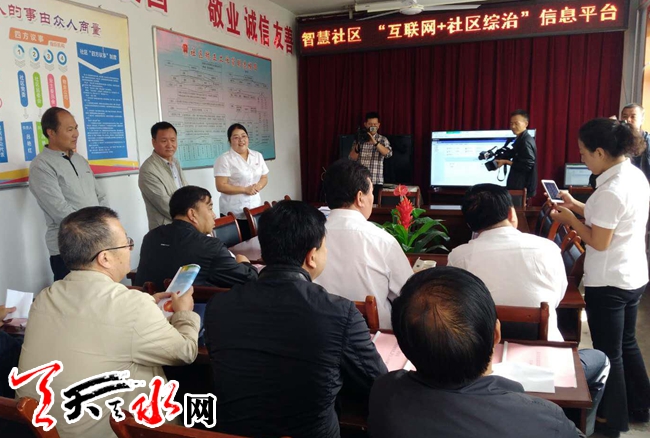 调研组观看了社区智慧信息平台,社区工作人员就智慧信息平台的运作向调研组进行了演示。