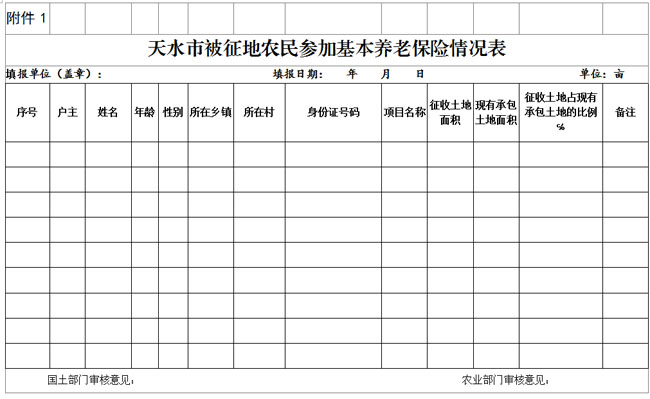 附件:1.天水市被征地农民参加基本养老保险情况表