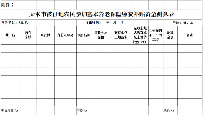 2.天水市被征地农民参加基本养老保险缴费补贴资金测算表