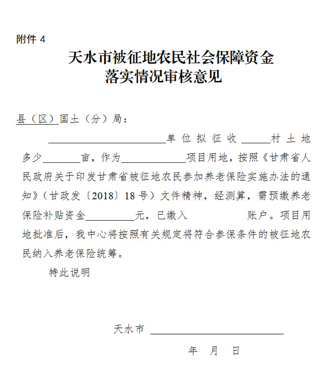 4.天水市被征地农民社会保障资金落实情况审核意见