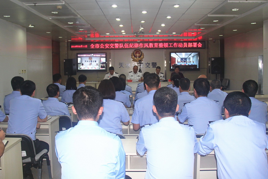 为了严肃警风警纪,解决突出问题,纯洁公安队伍,健全管理体系,再树良好形象,进一步提升全市交警队伍的执法能力和服务水平,9月11日,天水市公安局交警支队召开全市公安交警系统队伍纪律作风教育整顿动员部署视频会议。市公安局党委委员、副局长霍宝珊参加会议,市局交警支队政委毛建民作了动员讲话。会议由交警支队副政委黄泰生主持。