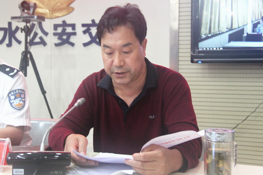 (市公安局交警支队副政委黄泰生主持会议)