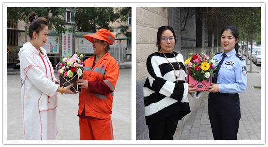 活动后,社区工作人员把她们亲手插的鲜花送给了辖区内最美丽人,其中有辖区单位民警、辛苦在一线的环卫工作者及热爱公益事业的志愿者们。