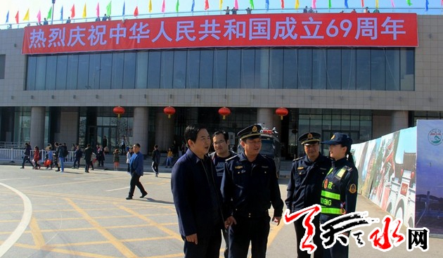 天天天水网讯 10月2日,市运管局局长王建明、副局长梁玉保一行来到天水南站,先后深入到汽车客运中心、公交车换乘中心、出租车乘车区,对国庆黄金周期间道路运输市场秩序进行了督查。督查组一行现场检查了旅客安检、车辆调度、运力储备等工作。