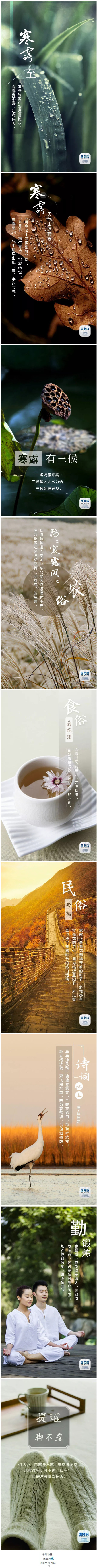 8日是二十四节气的“寒露”,属于秋季的第五个节气,是气候凉爽到寒冷的过渡,表示秋季时节正式结束。我国将寒露分为三候:“一候鸿雁来宾;二候雀入大水为蛤;三候菊有黄华。”九月节,露气寒冷,将凝结也。 寒露之后,露水增多,气温更低,此时有些地区会出现霜冻。