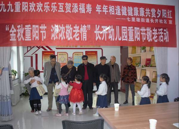 天天天水网讯(通讯员 辛娇娇) “人生最美夕阳红,世间最美老年花。”为庆祝传统佳节重阳节,大力弘扬中华民族尊老敬老的传统美德,给老年人提供增进感情的交流平台,丰富老年人的文化生活,10月12日下午,七里墩街道长开社区和长开幼儿园联合开展以“九九重阳节,浓浓敬老情”为主题的重阳节互动活动。社区的部分老党员、居民代表、以及长开幼儿园师生100余人欢聚一堂,共度重阳佳节。