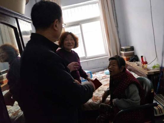 民政局领导一行先后来到刘根花、郑岚、李淑花家中,向老人们送去节日的祝福。在老人家中,大家和老人拉家常,详细询问老人的生活起居及身体健康状况,有无子女在身边照顾等。最后,民政局领导还嘱咐社区工作人员一定要时刻关心关注困难老人的生活,尽心尽力为老人办实事、办好事、解决困难。