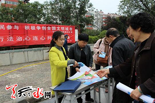 天天天水网讯(通讯员 任秀娟)10月16日下午,伊民巷社区和中城司法所开展以“手拉手行法治 心连心共和谐”为主题的法治宣传,旨在进一步提高社区群众的法治意识,为建设美丽幸福和谐新中城营造良好的法治氛围。