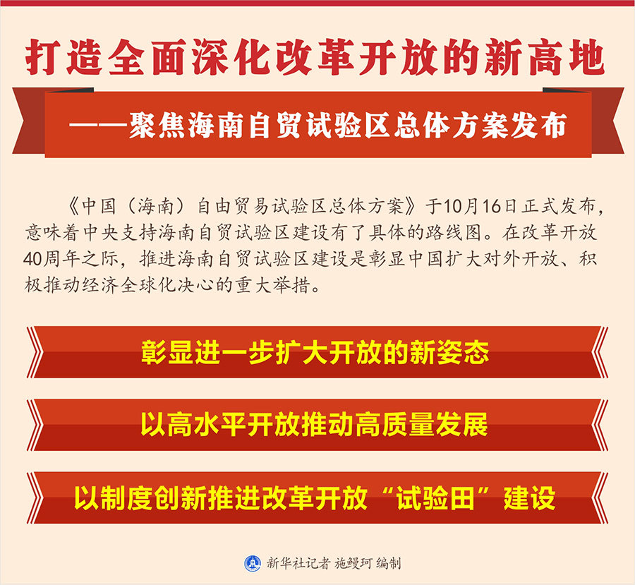 新华社北京10月16日电 题:打造全面深化改革开放的新高地——聚焦海南自贸试验区总体方案发布