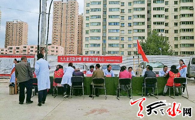 天天天水网讯(通讯员汪文惠)重阳节是中华民族的传统节日,为了弘扬中华民族敬老、爱老的传统美德,更好地关爱老年人的身心健康,10月17日下午,天水郡街道西十里社区携手新天坛医院,在大唐人家小区门口与新天坛医院医务工作者、社区志愿者一同开展了“九九重阳敬老情·健康义诊暖人心”活动,通过对辖区老人及居民群众进行“预防、保健、治疗”的科学指导,普及健康教育知识,免费诊断和免费体检,为老年人的身心健康,尽上自己的一份力量。