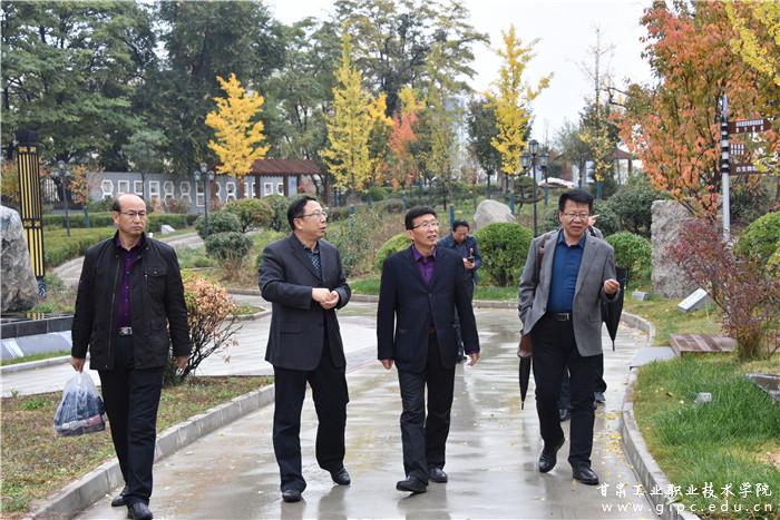 10月19日下午,酒泉职业技术学院党委书记、院长易志军,党委委员、办公室主任王金明,后勤管理处副处长杨学峰,总工程师李晋峰一行到我校参观交流。校党委书记杨声对易志军一行表示欢迎,并陪同参观。