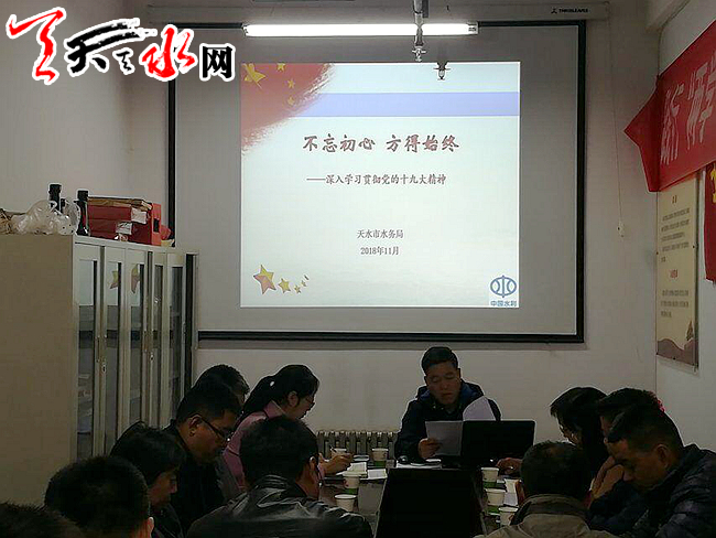 二是开展集中学习。首先,由市水务局机关支部副书记李军新领学了《甘肃省实施乡村振兴战略一周年综述》。其次,由西十里社区第一党支部书记赵永明同志领学《习近平新时代中国特色社会主义思想三十讲》第十讲《坚定不移贯彻新发展理念》、第十一讲《决胜全面建成小康社会》。最后,市水务局机关党委书记、副局长庞世忠以《不忘初心 方得始终》为题从新时代、新思想、新征程、新使命四个方面,为参会党员开展一次生动的党课辅导。