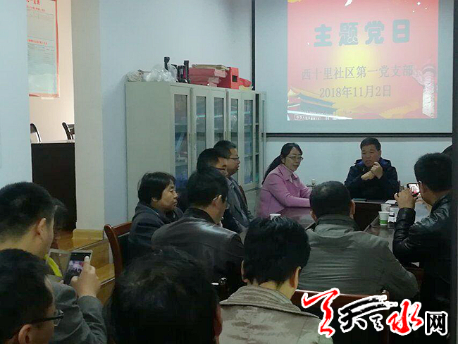 天天天水网讯(通讯员汪文惠)为了加强社区党支部结对共建,整合资源,凝聚力量。11月2日上午,天水市水务局直属机关党委与天水郡街道西十里社区第一党支部结对共建开展11月份“主题党日”活动。