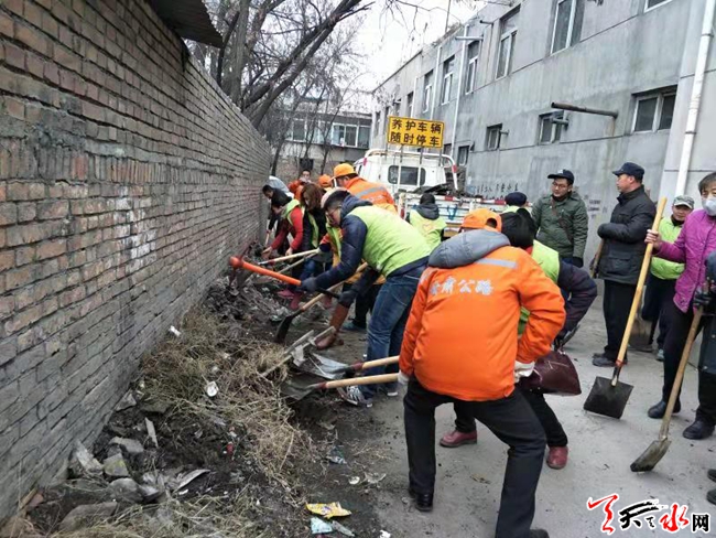 天天天水网讯(通讯员 韩雪梅)为创建全国文明城市,进一步完善人居环境,12月7日天水郡街道瀛池社区以“主题党日”、周五的社会活动日为契机,大力开展背街小巷老旧小区环境卫生整治工作。