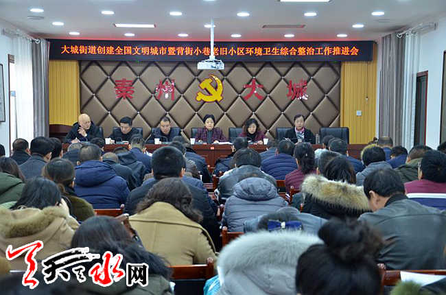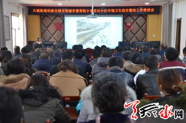 天天天水网讯(通讯员张勇杰)12月7日下午,大城街道召开创建全国文明城市暨背街小巷老旧小区环境卫生综合整治工作推进会,辖区各单位主要负责人、社区负责人以及相关专干等共计120余人参加了会议。