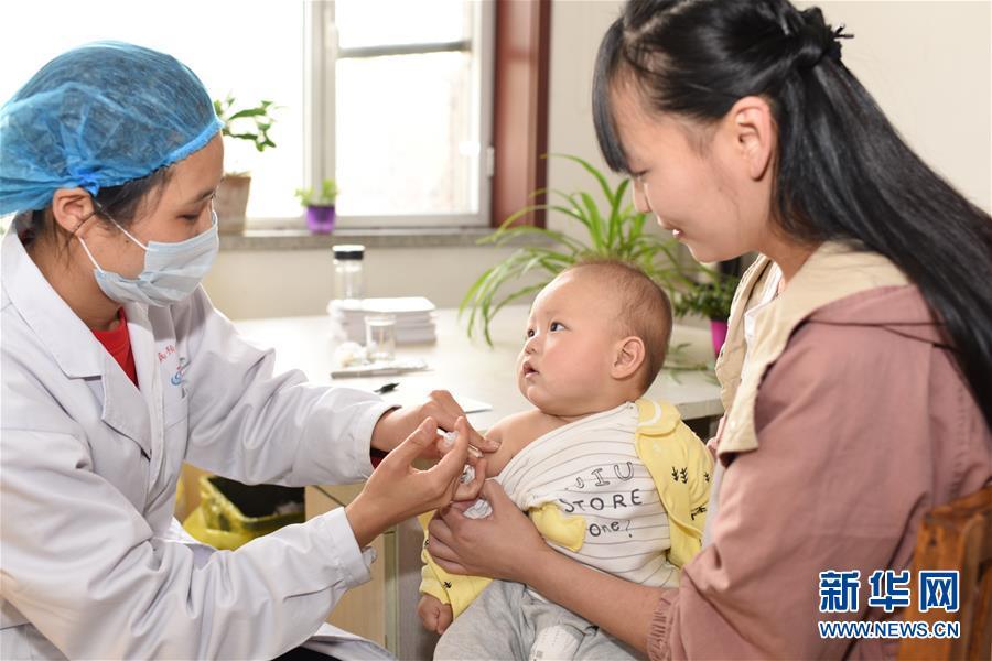 幼儿在河北省安平县疾病预防控制中心接种疫苗(4月25日摄)。新华社记者朱旭东 摄