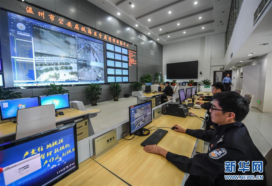 浙江省温州市瓯海区公安分局指挥中心内,警务人员正在后台实时监控各类动态信息(11月14日摄)。新华社记者徐昱 摄