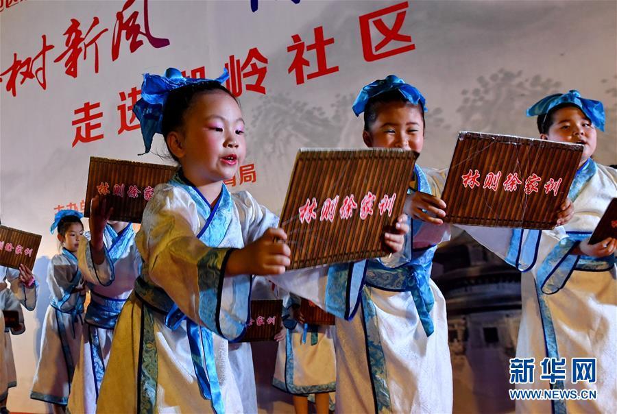 小朋友在福州市仓山区湖岭社区表演童谣舞蹈《林则徐家训——十无益》(6月12日摄)。近年来,福州市通过广泛开展“传承家风家训,推进移风易俗”宣传教育活动,弘扬优秀传统文化,营造风清气正的社会风尚。 新华社记者张国俊 摄
