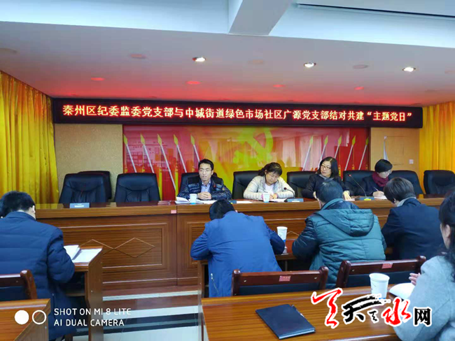 天天天水网讯【通讯员逯萱】12月7日,在秦州区中城街道会议室举行了区纪委监委党支部与绿色市场社区广源支部结对共建第一次“主题党日”,区纪委监委党支部的同志、绿色市场社区党委委员、广源支部党员共计30余人参加。