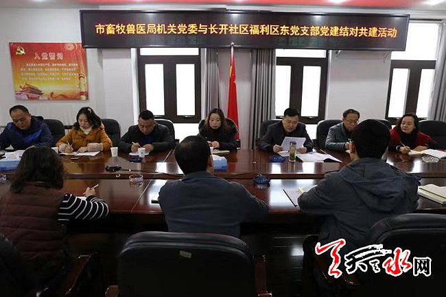 天天天水网讯(通讯员 缑文婷)12月14日,为了提升基层党建工作水平,努力构建资源共享、优势互补的党建工作新格局,长开社区福利区东党支部联合天水市畜牧局机关党委开展了结对共建活动。