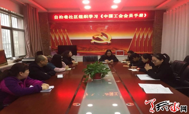 天天天水网讯(通讯员 安冬梅)为加强工会会员对于工会法律法规应知应会的学习,同时增进工会会员之间的沟通及交流,增强社区工会的凝聚力及归属感,12月20日,自治巷社区组织干部学习《中国工会会员手册》。通过学习,社区工会会员进一步加深和认识了关于工人阶级和工会工作重要论述的理解和把握。大家一致表示,今后要更加坚定不移地做好维权服务,以良好的精神状态做好本职工作。