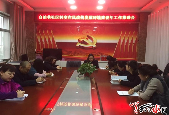 天天天水网讯(通讯员 安冬梅)为持续推进干部作风建设,提升工作水平,12月20日,自治巷社区召开转变作风改善发展环境建设年工作推进会,社区全体干部参加会议。