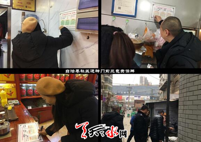 天天天水网讯(通讯员 安冬梅)创建全国文明城市,为规范辖区商户经营秩序,规范门前卫生行为,营造干净整洁的社区环境,按照环境综合治理要求,自治巷社区高度重视此项工作。12月24日,自治巷社区组织干部志愿者对辖区内大众中路开展了“门前三包”文明强化宣传工作。此次工作中,社区工作人员规范了商户门口的车辆摆放和不合理的占道经营现象,对已发放的门前三包责任牌进行了运转和评级。通过本次强化工作,不仅加强了辖区经营户对“门前三包”的意识,也对辖区环境进行了集中清理。社区希望通过长效化的持续治理行动,进一步向群众宣传“门前三包”管理规定。